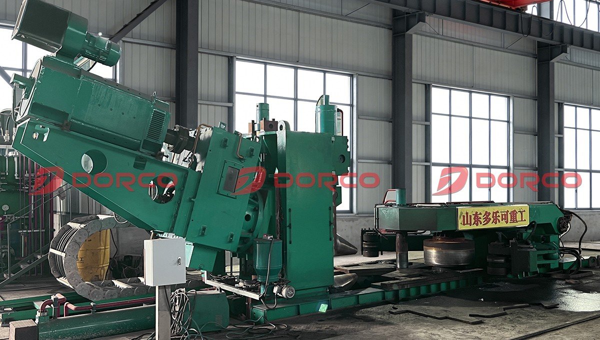 DORCO D53KF系列卧式辗环机采用CNC技术,可实现环件径向与轴向的同时轧制。操作时,只需输入环件、环坯、轧辊的尺寸及材料牌号等参数,设备即可自动执行轧制过程,环件尺寸及机器运行状态均在显示屏上实时显示。